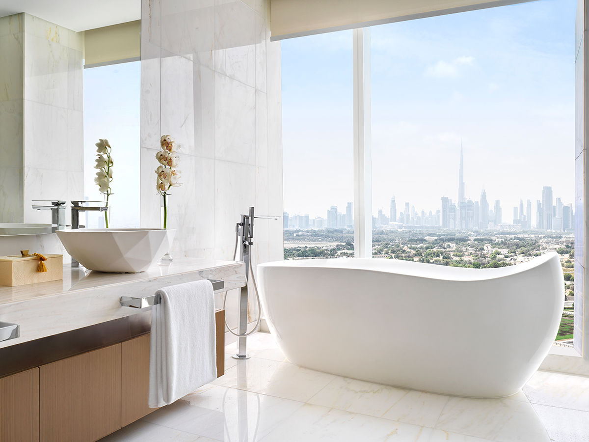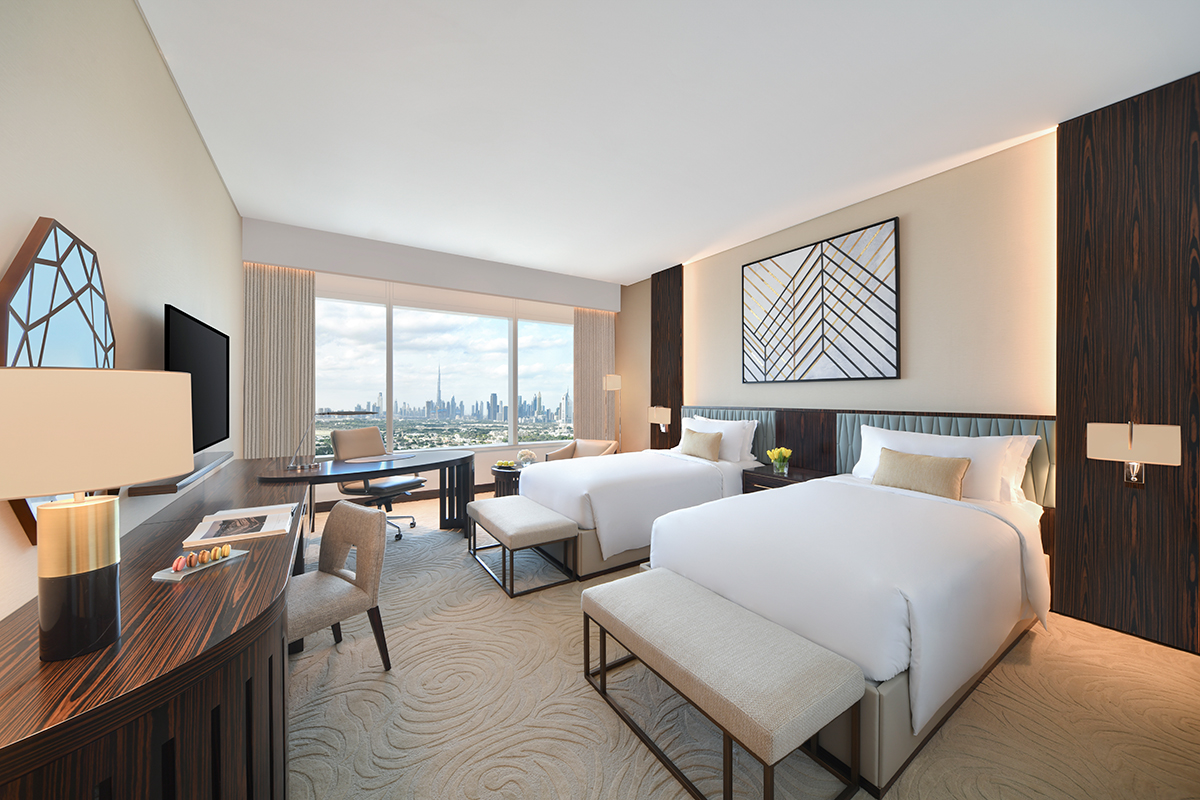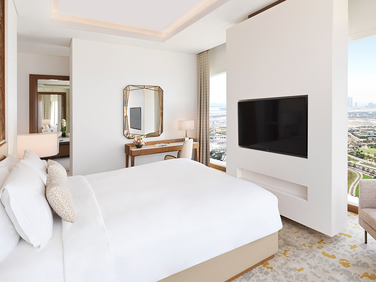 В однокомнатном номере гости размещаются на двуспальной кровати king-size, имеется рабочее место, зона отдыха, санузел с душем, ванной, феном, банными принадлежностями. В числе удобств Wi-Fi, кондиционер, телевизор, сейф, мини-бар, телефон, холодильник, кофемашина Nespresso, набор для приготовления чая и кофе, халаты и тапочки, доступ в представительский лаундж.